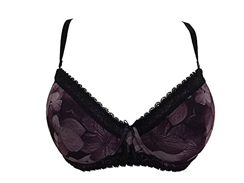Bra with 3x2 back closure, Light purple with Flower print, Normal daily basic style;
