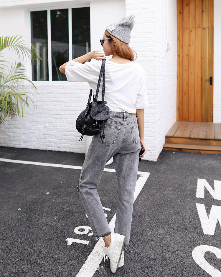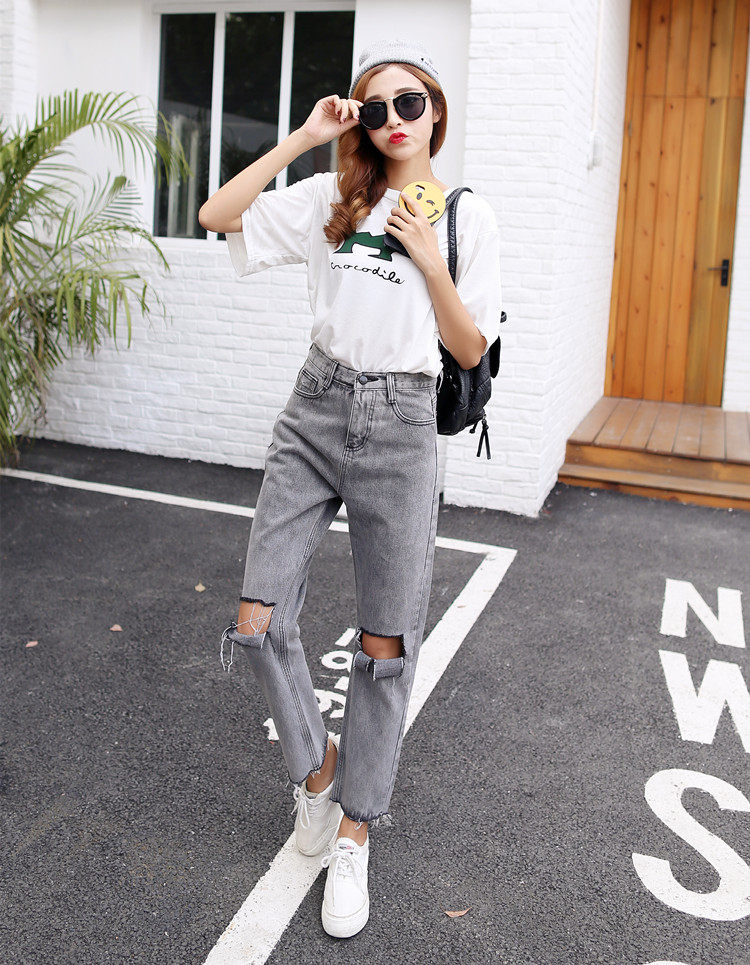 S-XL 2016 autumn and winter high waist vintage ash color high waist jeans woman denim ripped jeans for women