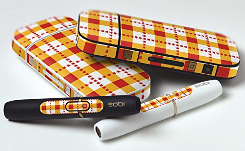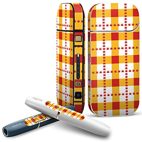 iQOS 아이코스 전용 레더 케이스 【기본모델 / 신형 2.4PLUS 양대응】 담배 전용 케이스 커버 합가죽(껍질) 커버 수납 iCOS iKOS 체크 보더 모양 오렌
