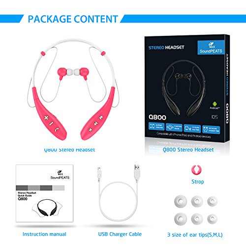 PACKAGE CONTENT: SoundPEATS Q800 Bluetooth Headset, 1x USB Charging Cable, 6x Ear Tips (S, M & L), Strop, Instruction manual & SoundPEATS 12 Months worry-free warranty.
