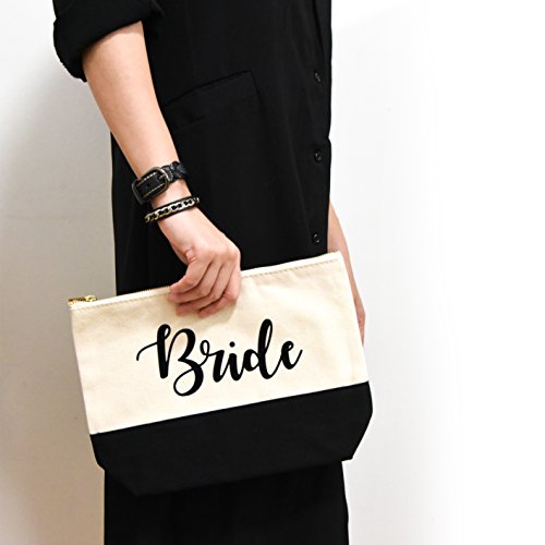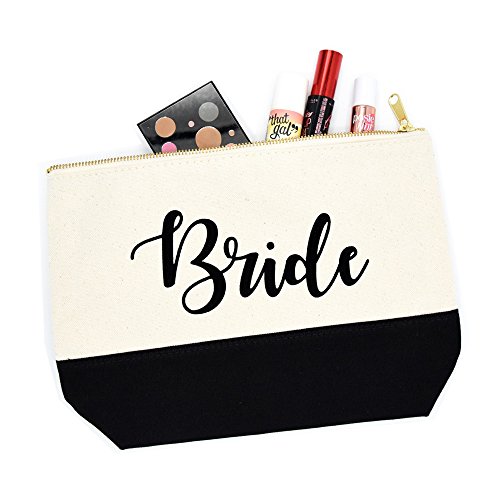 -. Brand : PumPumpz -. Department : womens -. Feature : Flock heat transfer " Bride / Mrs " / Width 13" x Height 8.5 " x Bottom 3.2 " / Canvas 15 oz. Fabric Sturdy canvas construction / Gold YKK zipper / Great for gifts...bride to be gift, bridesmaid gifts and other milestone moments -. ProductGroup : Shoes -. ProductTypeName : HANDBAG -. Size : Large -. Title : PumPumpz Personalized Gifts Wedding "Mrs. Est. 2017 /Bride" Makeup Large Travel Bag With Ykk Zipper. - The bride 2017
