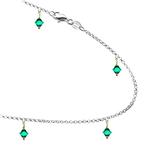 -. Feature : Metal- .925 Sterling Silver. 1.5mm Rolo style Link / Made with Swarovski Crystal Elements / Color- Emerald Colored Green Crystals / Length- 7, 8, 9, 10, 11, 12, 13 Inches available. / Anklet, Bracelet
