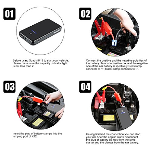 Suaoki K12 8000mAh 300A Peak Jump Starter Lithium Battery Booster Powerpack with Built-in Flashlight Perfect for Automotive Truck Motorcycle Boat