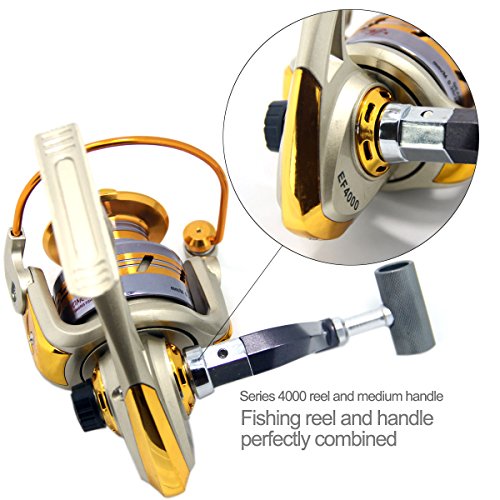 -. Feature : Fishing Spinning Reel Handle, ideal for replacing your old or broken handle, reel repair assembly parts / Main Material: Metal, Alloy, Plastic / Net Weight: Medium (45g), Large (49g) / Handle length: Medium and Large, 2 sizes for selection / Color: shown as the picture, we randomly ship