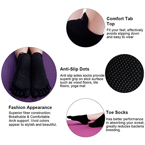 -. Feature : √ Full Toe Design Better to exercise: The unique five-toe separation design allows toes to move and spread naturally, can increase the flexibility of your toes and sensitivity and keep your feet warm in / √ Non Slip Grip Sole for better balance: Featured Environmental non slip silicone dots on the bottom of the sock; Reduce the risk of slipping on smooth surfaces, help you better on the floor or mat; Provide safety and security, improve stability and balance / √ Perfect Yoga Socks Slipper Socks: Low rise toe socks hug your foot below; Ideal grip sock for Yoga, Pilates and Barre; Both perfect to wear as the home slippers, keep cozy and comfy / √ √ Premium Cotton Fabric for excellent comfort and stretchy fit : Made of super soft 80%cotton, 10%polyester, 10%elastane, smooth feel and breathable; One Size fits for US Women's sock size 9-11, shoe size 5-9 / √ Customer Service Guarantee: If you are not 100% satisfied with our socks, please feel free to contact us; We will get back to you within 24 hours and try our best to fix the issue; ORDER NOW!