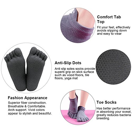 -. Title : Full Toe Yoga Socks, J'colour Women's Low Rise Grip Non-Slip for Ballet, Pilates, Barre Toe Socks 1,2,3 Pairs