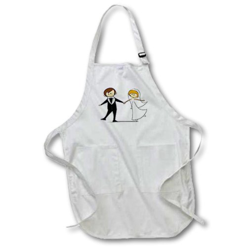 3dRose Dancing Bride and Groom Cartoon - Medium Length Apron, 22 by 24-inch, With Pouch Pockets (apr_165464_2)