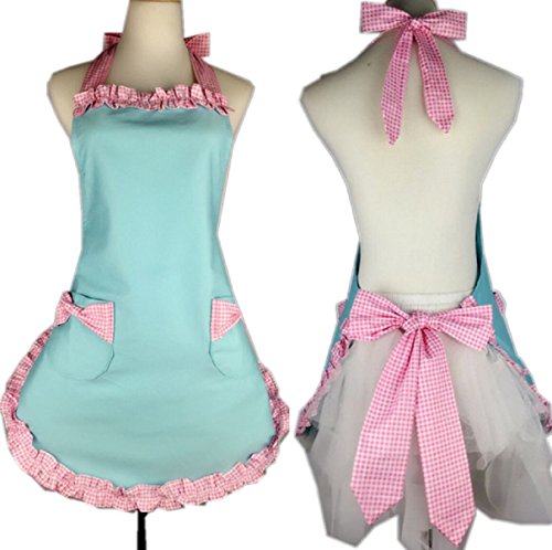 Aprons for Women, Cooking Retro Vintage Kitchen Aprons Plus Size with Extra Ties (Pink)