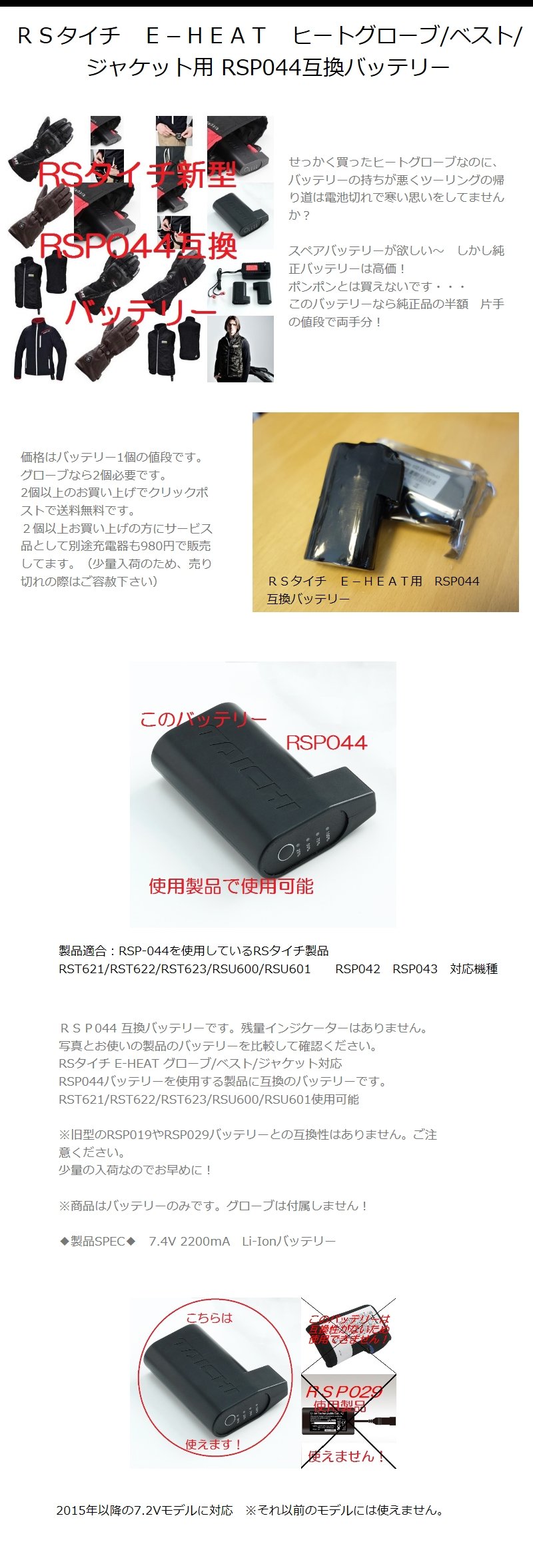 RS Taichi New model E-HEAT series compatible battery after 2015 RSP 044 compatible Li-Ion battery newly appeared.