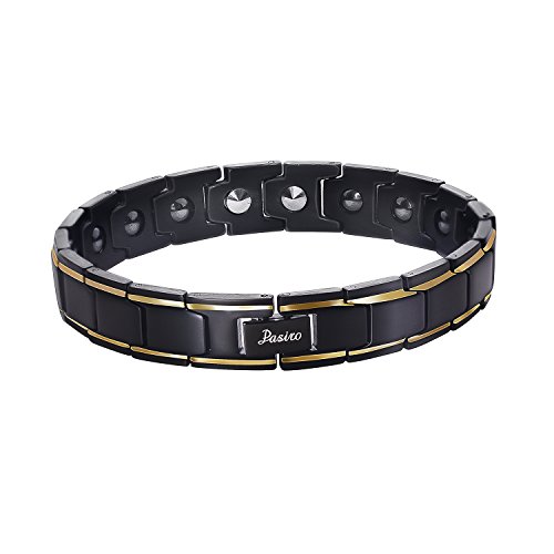 Pasiro 게르마늄 팔찌 맨즈 스테인레스제 항피로 수면 개선 어깨결림 해소 신사 건강 자기 팔찌 금속 알레르기 프리