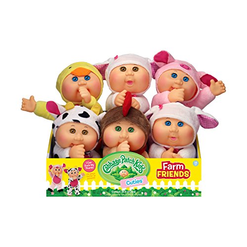 Cabbage Patch Kids Cuties Collection - Clara Cow Cutie Baby Doll - The all-new 9'' Cabbage Patch Farm Friend Cuties need your love and care! Inspired by the sweet and adorable animals running around on the farm, these soft and cuddly Cuties love to suck their thumb and feature a snuggly onesie with adjustable hood, ready for adventure. Take the Oath of Adoption today and become a part of the Cabbage Patch Kids family! Each 9'' Cutie is numbered for collectibility.Feature