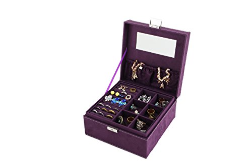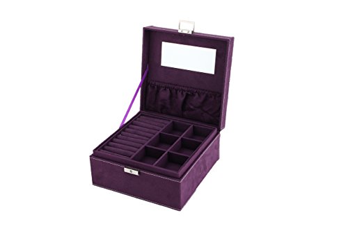 women velvet two layers necklace rings makeup etc organizer Cube jewelry display/jewelry boxes for girls (purple)