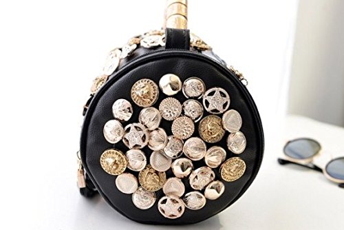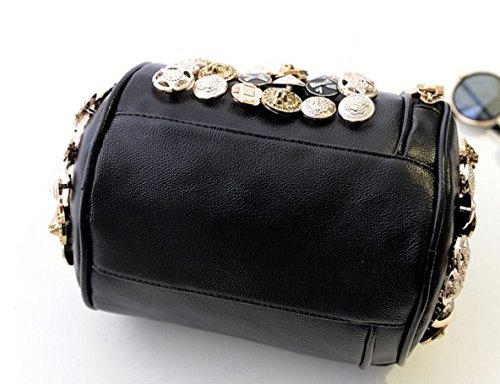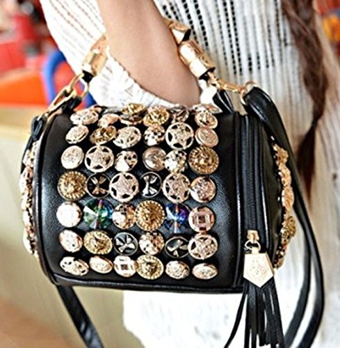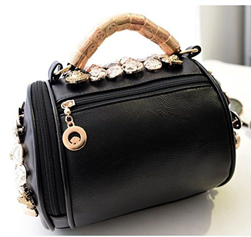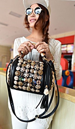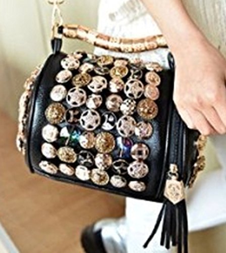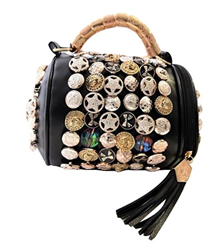 ILISHOP Hot Sale Women's Fashion Summer PU Leather Tassels Barrel Handbag Shoulder Bag Mini Cross-body Bags (Black)