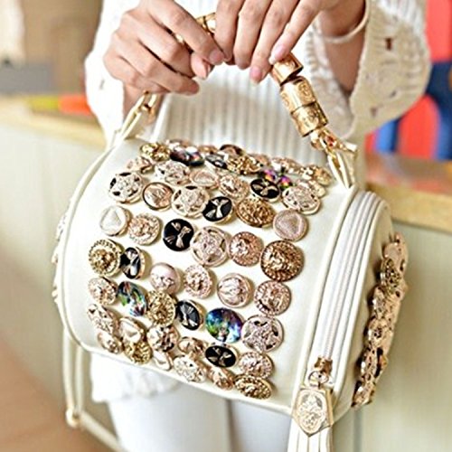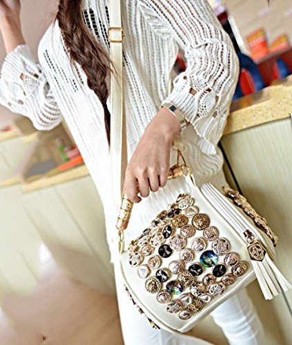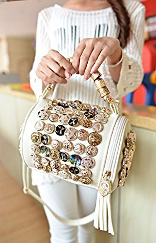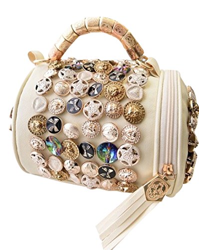 ILISHOP Hot Sale Women's Fashion Summer PU Leather Tassels Barrel Handbag Shoulder Bag Mini Cross-body Bags (White)