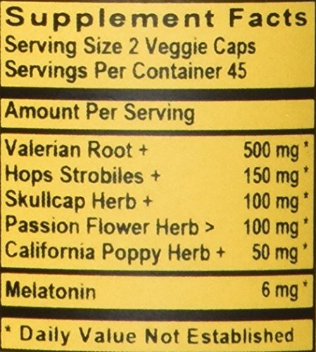 ReleaseDate : 2017-05-11 Studio : BIOMED BALANCE LLC Publisher : BIOMED BALANCE LLC Binding : Health and Beauty Product Description 250 mg Organic Valerian Root, 75 mg Organic Hops Strobiles, 50 mg Organic Fresh Skullcap Herb, 50 mg Wild harvested Passion Flower Herb, 25 mg Organic California Poppy Herb, 3 mg Melatonin 0