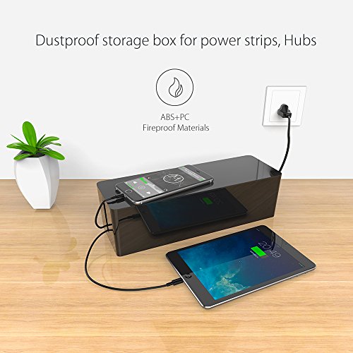 QICENT Cable Management Box 12.7 X 3.8 X 3.6 inches Electronics Organizer Box for Desk & TV & Computer Power Strips, Surge Protector, TV Computer Cable, USB Hub and More