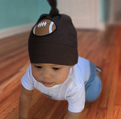 -. Feature : Super Soft, Organic Football Brown Baby Hat / Adorable Football Adorns the Front / Twist Tie Top for added cuteness / Stretchy, so can grow with your baby boy / One Size: 0 - 18 Months