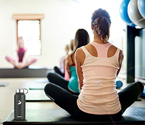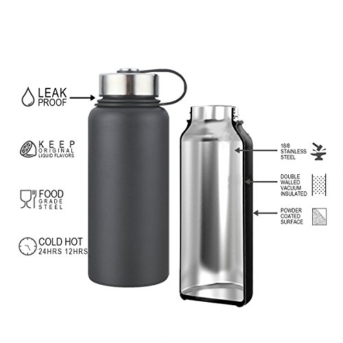 - √ POWDER COATED -- Powder coating is more durable than other paints, It makes the BPA free bottle has a sleek appearence and comfortable touch feeling. And laser marking makes this bottle look cool.