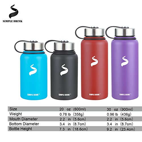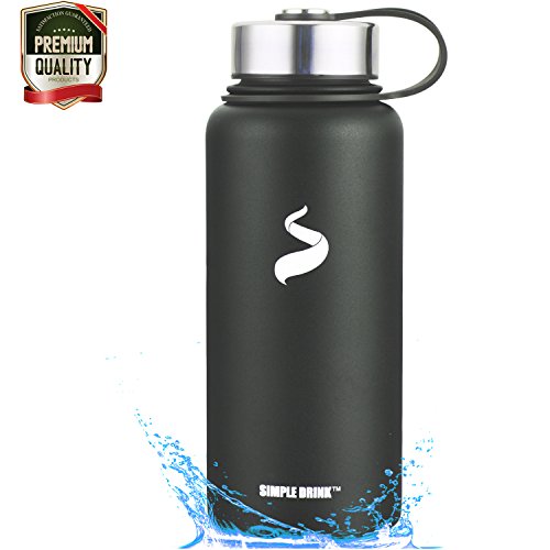 Simple Drink Stainless Steel Insulated Water Bottle - Wide Mouth Leak Proof Vacuum Outdoors Coffee Mug - Ice Cold Up to 24 Hrs / Hot 12 Hrs Double Walled Canteen