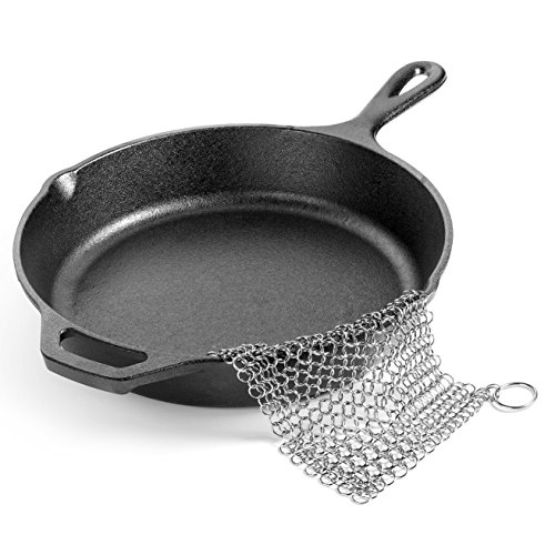 ECO-FRIENDLY & ENDURING: This cast iron skillet cleaner is handcrafted by Premium 316 Stainless steel, It is ideal for cleaning all your cast iron cookware, such as cast iron pans , pre seasoned cast iron , skillets, dutch ovens , camp chef griddles , waffle irons and so on .