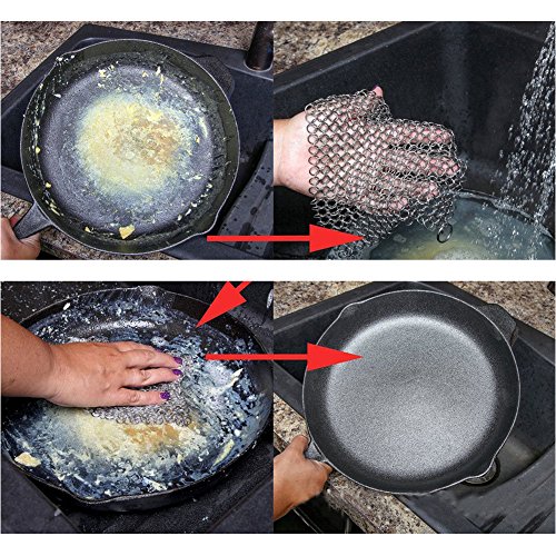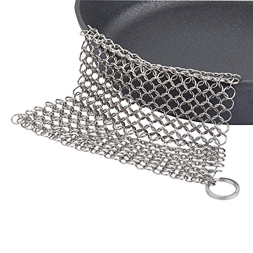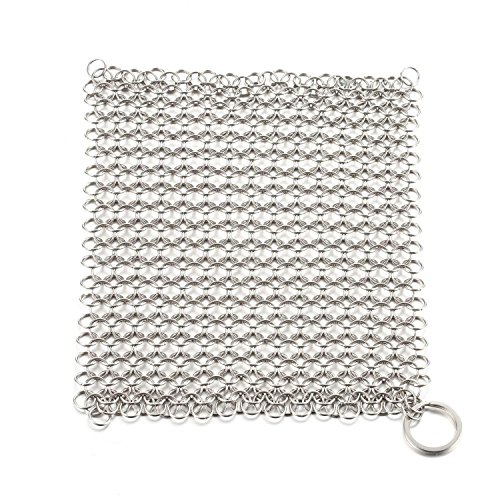 Wikor Cast Iron Cleaner 316 Stainless Steel Chainmail Scrubber Ringer 8x 6 for Cast Iron Pan Dutch Ovens Waffle Iron Pans Scraper Cast Iron Grill Scraper Skillet Scraper Specification: Material:Stainless Steel