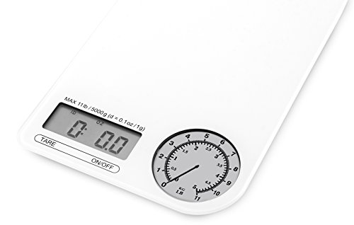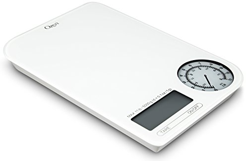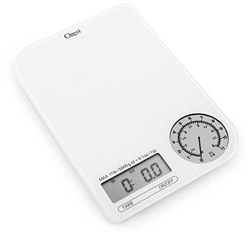Studio : Ozeri Publisher : Ozeri Product Description The Ozeri Rev Digital Kitchen Scale with Electro-Mechanical Weight Dial is the world's first digital kitchen scale to incorporate a synchronized electro-mechanical dial and LCD that automatically illuminate and display the measured weight both digitally and mechanically. Boasting a visually arresting design, the Ozeri Rev Digital Kitchen Scale is equipped with 4 new high-precision sensors that accurately weigh from 0.1 oz to 11 lbs (5000 g) in graduations of 0.1 oz or 1 gram. With its dual display system, the Ozeri Rev Kitchen Scale provides a digital display for precision measurements in ounces, grams or millimeters, and a mechanical analog dial for viewing measurements of heavier items in both lbs and kg simultaneously. The Rev utilizes a Touch Tare button to instantly calculate the net weight of your ingredients, and a convenient Unit button to change the unit of measurement displayed on the LCD from lbs:oz to grams and ml. The Rev runs on 3 AAA batteries (included) and features a low battery indicator. Your satisfaction is 100 percent guaranteed. 0