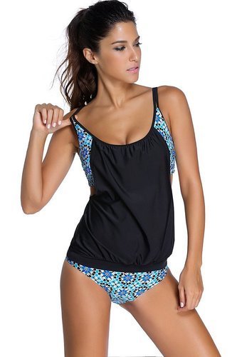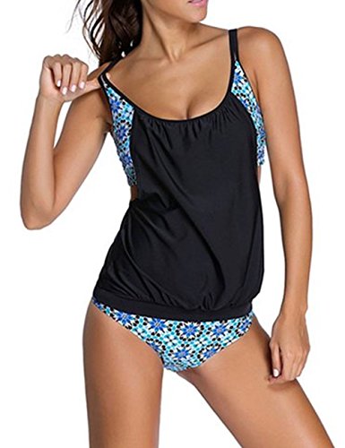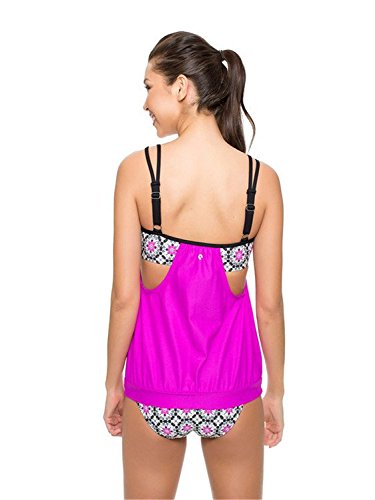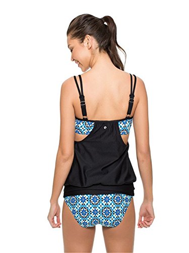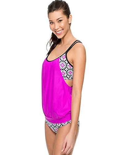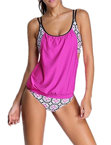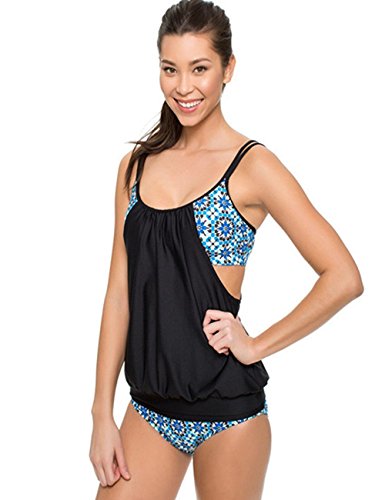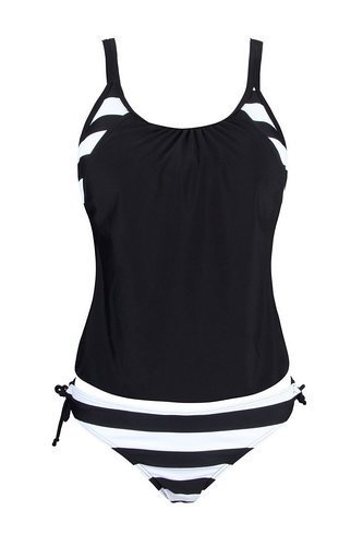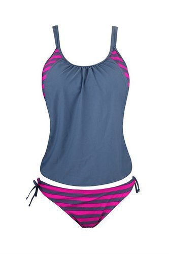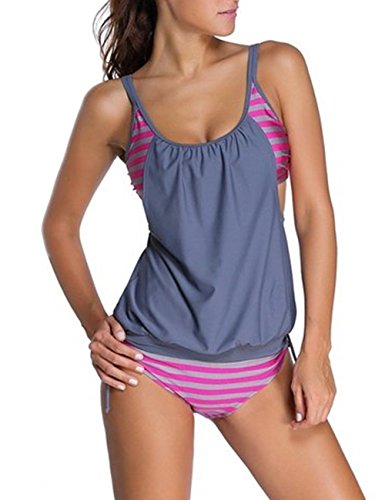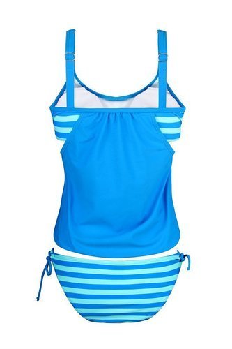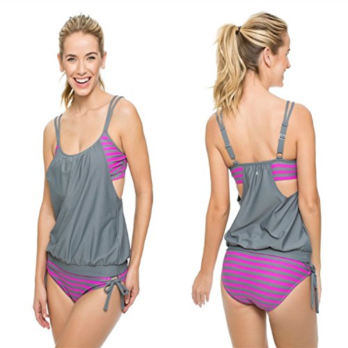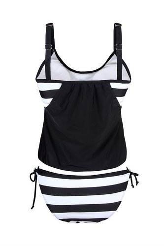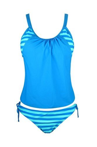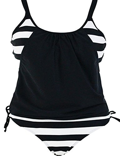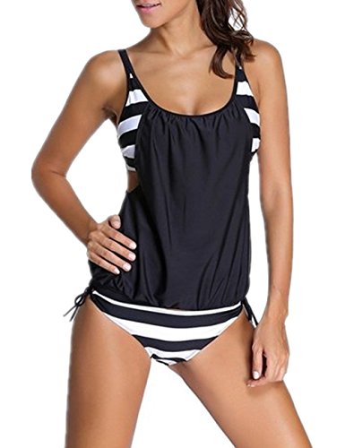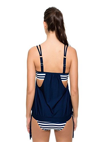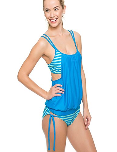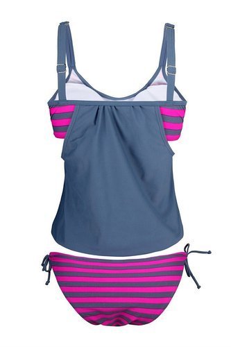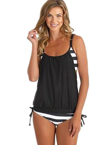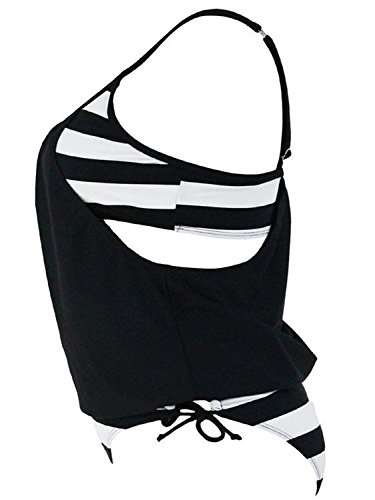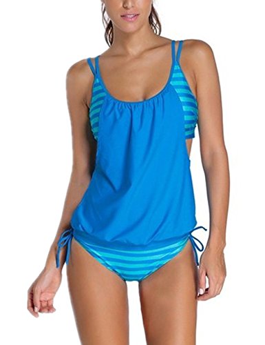 | Ninimour-Womens Stripes Lined Up Double Up Blouson Tie Tankini Swimwear |