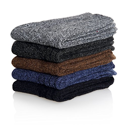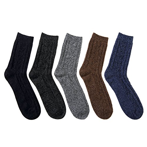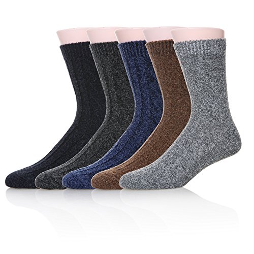 -. Binding : Apparel -. Brand : YEBING -. Department : mens -. Feature : Comfortable, elastic and breathable classic crew sock design / SIZE & CARE : These Men / Boy socks come is a standard US SIZE that fit shoe sizes from US 6 - 12, so everyone can enjoy these colorful, fashion socks. Please do not iron them and sesting wash them by hand, high quality socks require the proper care! / 5 IN 1 PACK - (Random colors) Five attractive colors you can match them with any of your favorite outfits. / HIGH-QUALITY - Material is a blend of 41% Wool,30% Cashmere, 25% Terylene and 4% Spandex. So they are soft, comfortable, breathable, warm and durable men socks. / EXCELLENT GIFT CHOICE : Everybody needs more socks. YEBING winter wool cotton socks make the perfect present for hikers, outdoor walkers, you also could choose for your boyfriend, son, husband, as birthdays, Christmas gift or as men socks gift. -. IsAdultProduct : 0 -. ProductGroup : Apparel -. ProductTypeName : SOCKSHOSIERY -. Size : 6-12 -. Title : YEBING Mens Thick Warm Comfort Wool Crew Winter Socks 5-Pack Mixed Colors