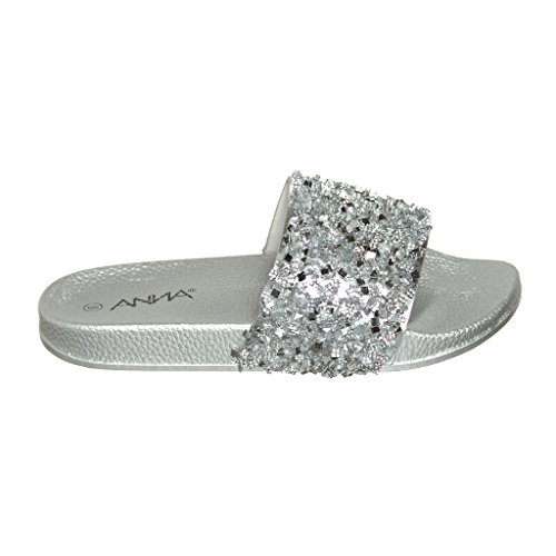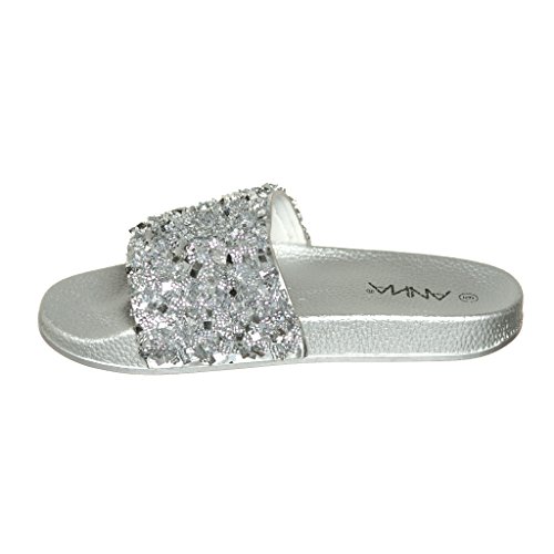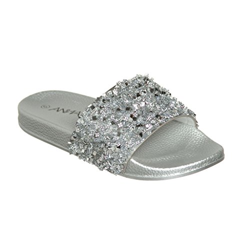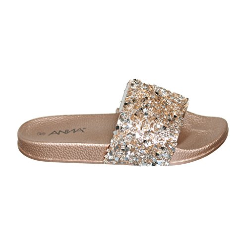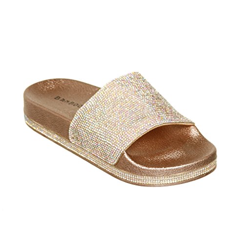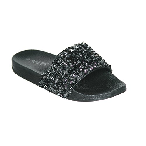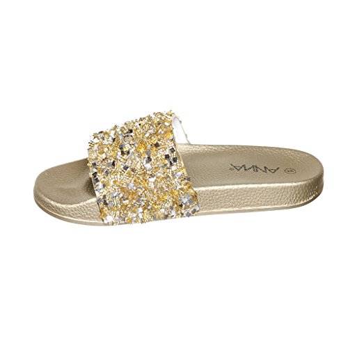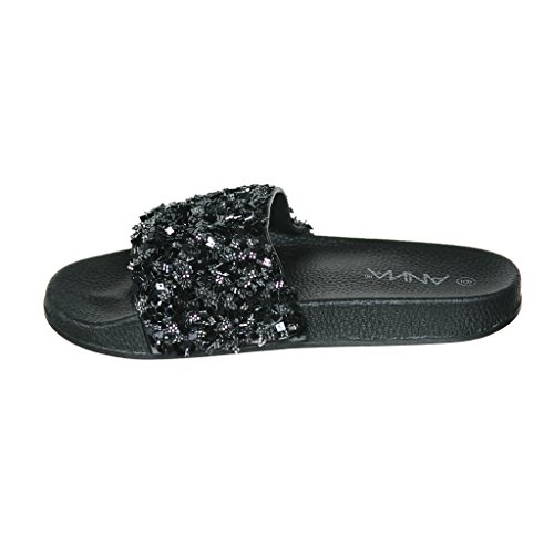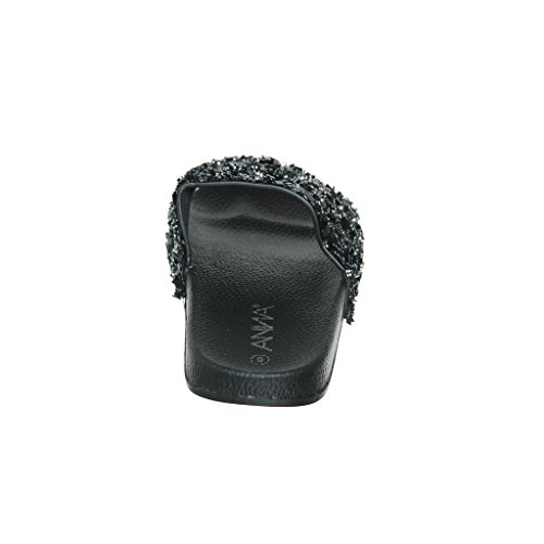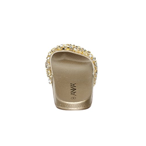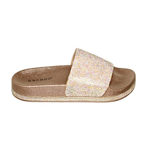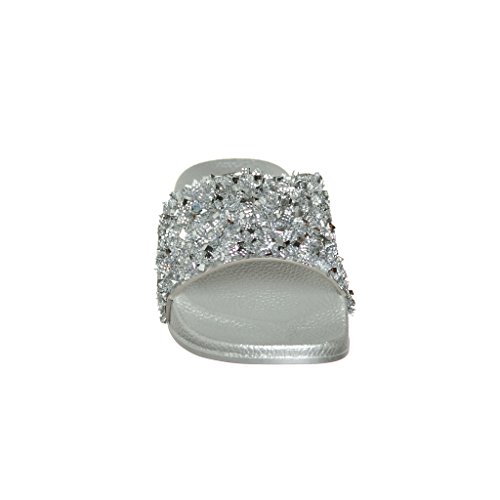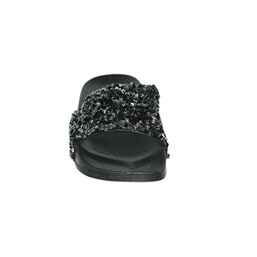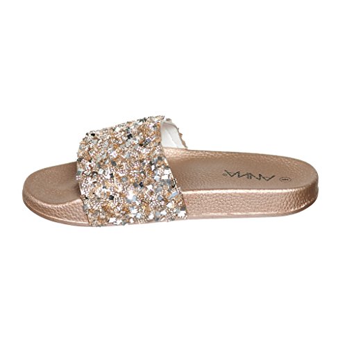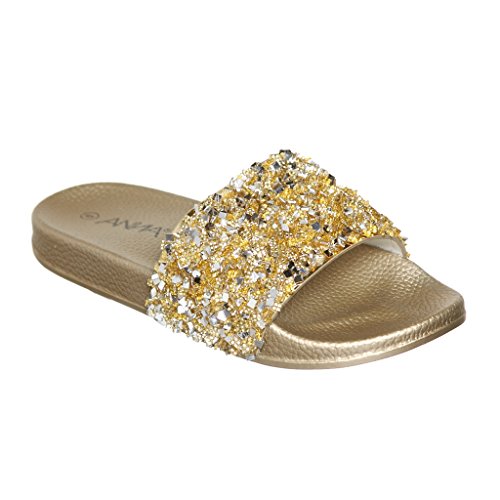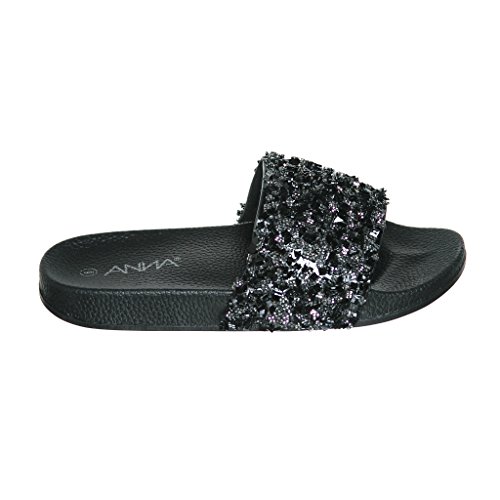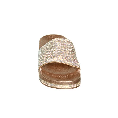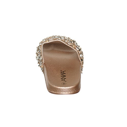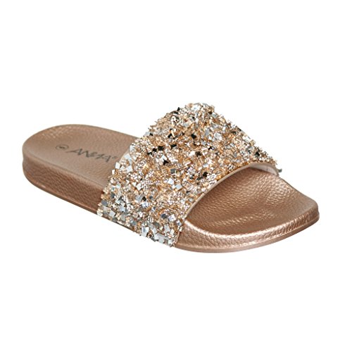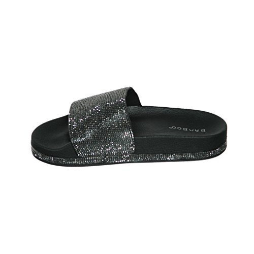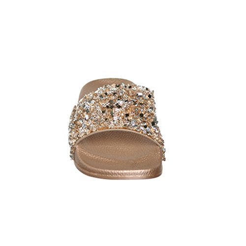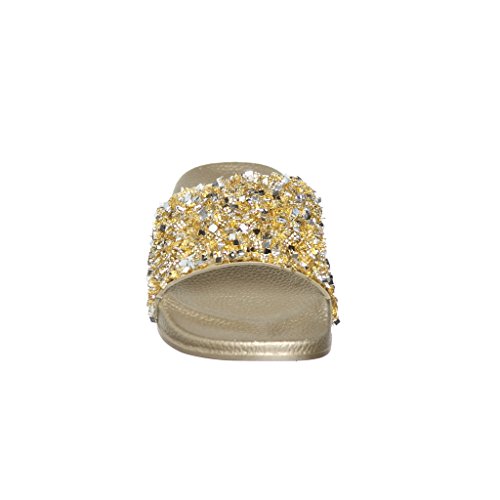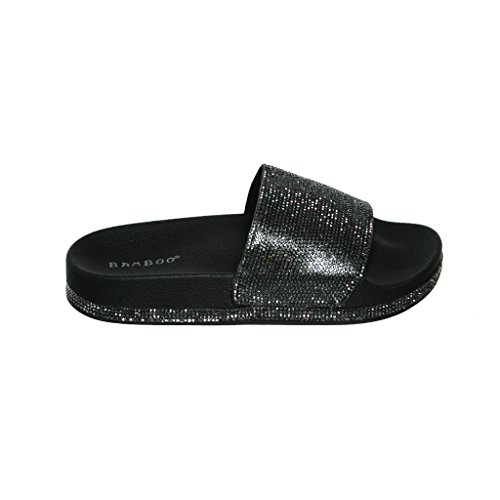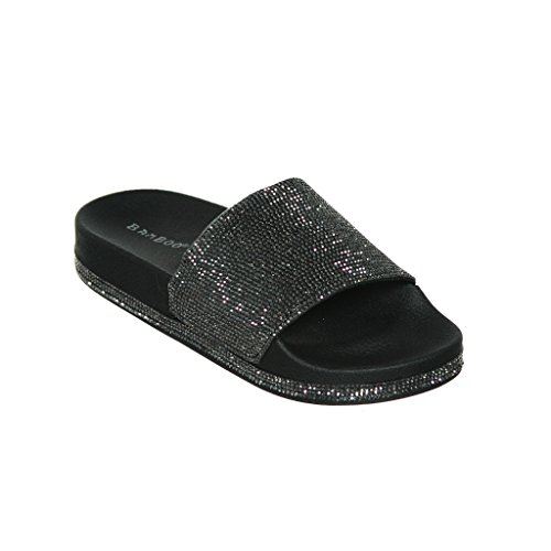 Women's Flat Softy Slip on Slider slipper Sandals with Rhinestone Embellishment