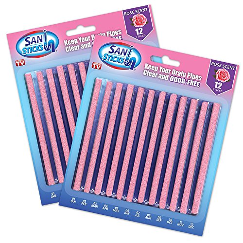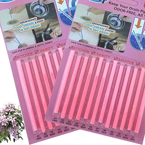 -. Feature : Size: Approx 11.7X14cm,Color: Blue(sea)Pink(rose)Quantity:12pcs/set*2 / Powerful enzymes break down oil and grease and unclog sinks and clogged toilets,100 percent safe for plumbing and septic tanks with no toxic chemicals / Magic sticks help to prevent clogging or smelly drains, perfect for kitchen, vanity, bathtub, utility / mop sinks. and prevent clogged sinks / Avoid embarrassing smells and nasty water buildup in sinks and showers with just one Sani Stick per month / USE ON: Sinks, Tubs, Floor Drains, Garbage Disposals & More