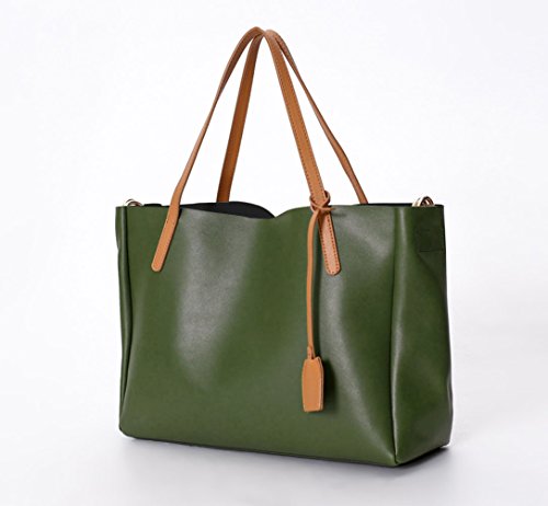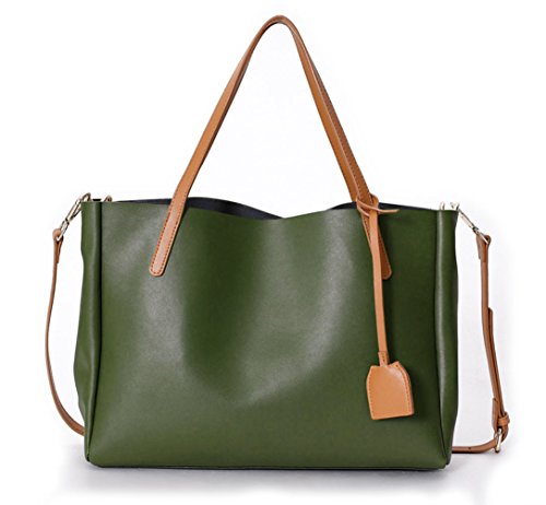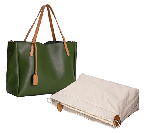 -. Brand : La Poet -. Color : green -. Department : womens -. Feature : Genuine leather / Size: 14"(L) x 10.5"(H) x 5"(W) / Interior details: removable zip bag with interior wall zipper pocket and two Multi-function pockets / Fabric lining / 18" Shoulder strap with 7 3/4" drop / Additional attachable strap: adjustable 22.5'' drop -. ProductGroup : Shoes -. ProductTypeName : HANDBAG -. Title : La Poet Women's Cowhide 2 in 1 Bucket Tote Bag with Removable Pouch