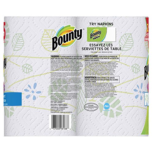 -. Binding : Health and Beauty -. Brand : Bounty -. EAN : 0037000981886 -. Feature : Pack contains 2 Huge Rolls of Bounty P.R.Inted paper towels / Each Huge Roll contains 150% more sheets than a regular roll / Bounty P.R.Ints are still 2X more absorbent, so you can use less Vs. the Custom-Size-It brand in the US and the Premium Green Leaf Towel in Canada / The Quicker Picker Upper vs. the leading ordinary brand -. IsAdultProduct : 0 -. Label : Procter & Gamble (P&G-2) -. Manufacturer : Procter & Gamble (P&G-2) -. MPN : 10037000981883 -. NumberOfItems : 1 -. PackageQuantity : 1 -. PartNumber : 10037000981883 -. ProductGroup : Health and Beauty -. ProductTypeName : HEALTH_PERSONAL_CARE -. PublicationDate : 2017-02-01 -. Publisher : Procter & Gamble (P&G-2) -. ReleaseDate : 2017-02-01 -. Studio : Procter & Gamble (P&G-2) -. Title : Bounty Select-A-Size P.R.Int Paper Towels, 2 Count -. UPC : 037000981886