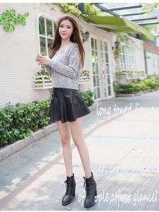 オーバーサイズのニットなら、チラっと裾だけ見せても可愛いですね♪