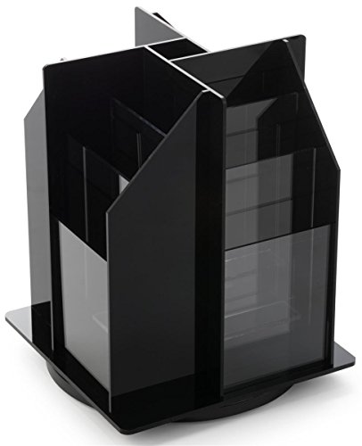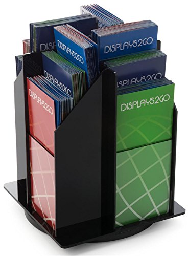 Displays2go Spinning Tabletop Brochure Holder for 4 x 9 Literature, 12 Tiered Pockets, 360 Degree Rotating Design for Countertop Use, Black Acylic (TT12)