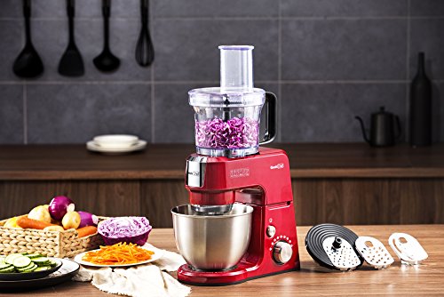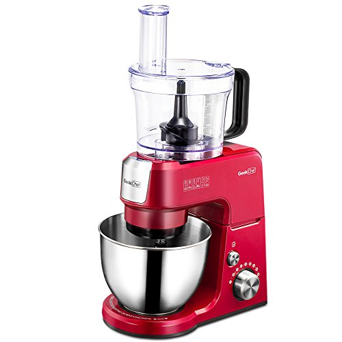 Compatible with GeekChef Stand Mixers (GM25B/GM25R/GM25S). Upgrade your GeekChef Stand Mixer to next level. Includes 40Ounce BPA free plastic bowl, feed tube, food pusher, multipurpose blade, coarse shredding disc, fine shredding disc and slicing disc.