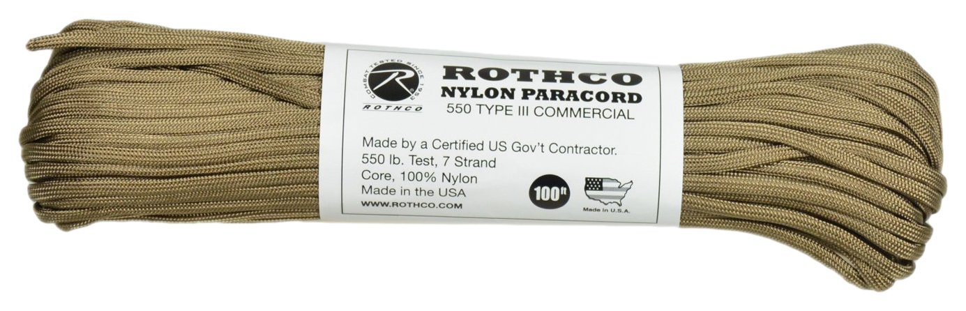 Made in USA, it is a parachute code made of nylon which twists 7 inner cords into a single rope and withstands a load of about 250 kg.