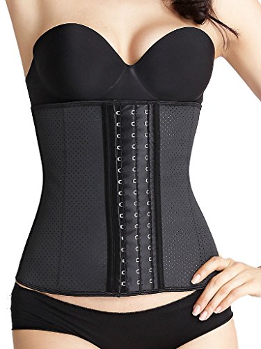 iSZEYU Womens Latex Waist Trainer for Weight Loss Training Corset Workout Cincher Plus Size Slimming Body Shaper Steel Boned Hooks Shapewear Tummy Girdle