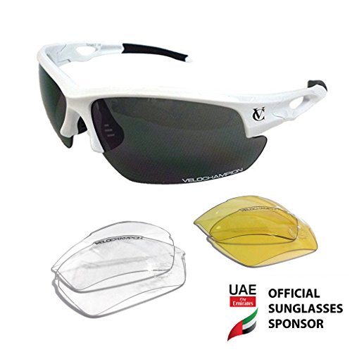 VeloChampion are the official eyewear supplier to the World Tour Team UAE Emirates. Velochampion Tornado Cycling / Running sunglasses – with spare lens for different lighting conditions 100% UV eye protection plus wind and glare protection during outdoor sports like cycling running trekking hiking skiing shooting fishing and driving