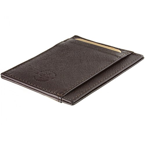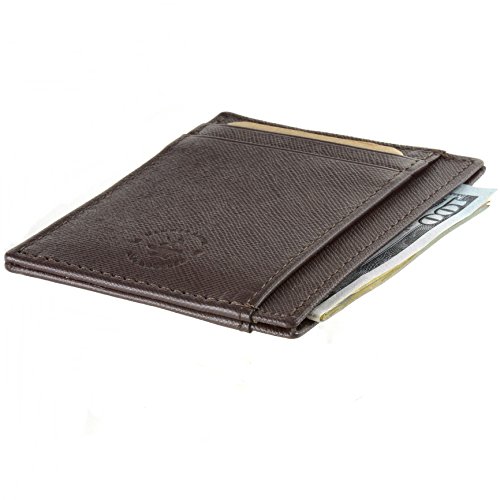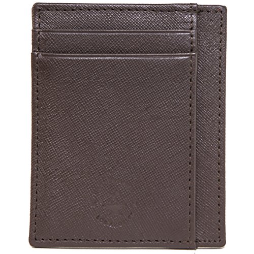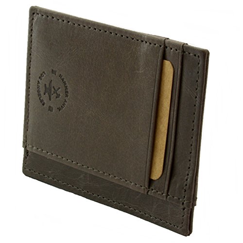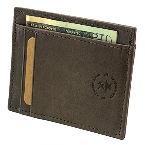 Hammer Anvil RFID Blocking Genuine Leather Front Pocket Wallet Card Case Brown