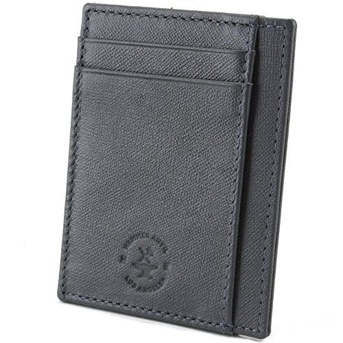 Hammer Anvil RFID Blocking Minimalist Genuine Leather Slim Front Pocket Wallet CH Blue