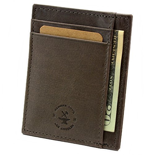 Hammer Anvil RFID Blocking Minimalist Genuine Leather Slim Front Pocket Wallet CH Brown