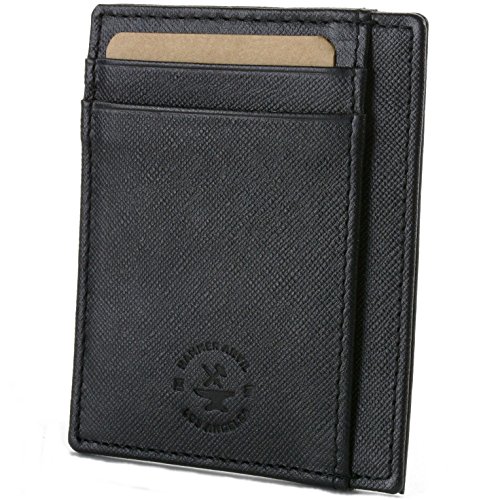 Hammer Anvil RFID Blocking Minimalist Genuine Leather Slim Front Pocket Wallet CH Black