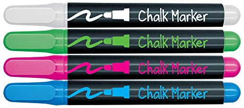 Feature : 4 count pack of liquid, Dustless chalk markers / Pump tip marker and plastic barrel for easy writing and no mess lay down / Chalk markers wipe clean off any dry erase surface with eraser or dry cloth / Non toxic / Great for home, school or office