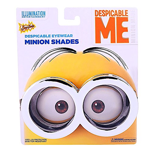 -. Feature : Officially licensed Minions glasses made by Sun-Staches / Very comfortable to wear and extremely durable / High quality rubberized plastic design with clear lenses that offer 100 percent UV400 protection / Great accessory for any Despicable Me Minions costume