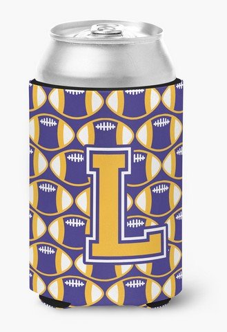 Caroline's Treasures CJ1064-LCC Letter L Football Purple and Gold Can or Bottle Hugger, Multicolor