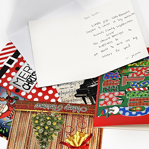 Studio : Gift Boutique Publisher : Gift Boutique Binding : Office Product Product Description Gift Boutique Christmas greeting card set includes 6 different elegant Christmas designs for a total of 48 greeting cards and 48 envelopes. Each card is blank on the inside to include custom messages for business and personal use. Cards are made of thick quality paper for extra durability. Blank Inside for your personal message! Cards measure 4" x 6". Includes White V-flap envelopes. Have enough Christmas greeting cards handy for the Holiday Season. 0
