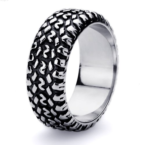 Title : 9MM Stainless Steel High Polish Oxidized Tire Ring (Size 8 to 15), 15