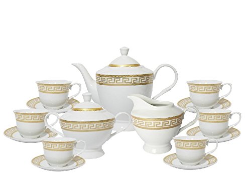 -. Binding : Kitchen -. Brand : Imperial Gift -. Color : Gold -. Feature : Dishwasher safe, service for 6 / For everyday use / Gift boxed, fine porcelain / Large tea cups 7.75 oz -. Label : Imperial Gift -. Manufacturer : Imperial Gift -. Model : G1347B-17 -. NumberOfItems : 1 -. PackageQuantity : 1 -. ProductGroup : Kitchen -. ProductTypeName : KITCHEN -. Publisher : Imperial Gift -. Studio : Imperial Gift -. Title : Imperial Gift G1347B-17 17 Piece Greek Key Tea Set, Gold