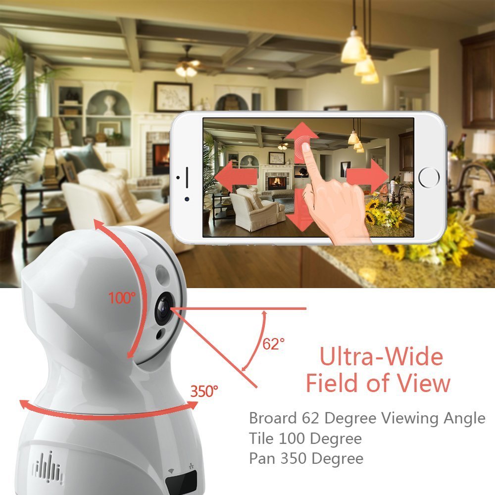 d. This IP camera can swing, 350 ° left and right and 100 ° up and down.