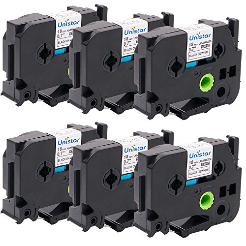 Package Included: 6 Pack; Size: 18mm width x 8m lenght (3/4 inch x 26.2ft ); Color: Black on White; 100% compatible brother p touch label maker TZe TZ tape